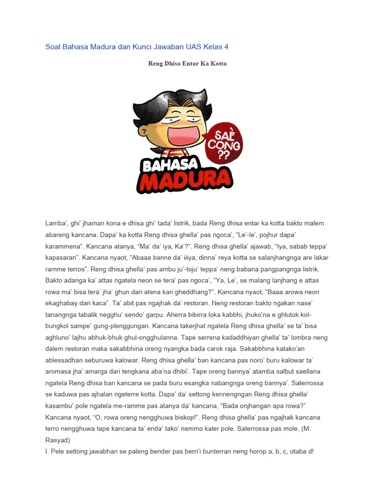 Artikel ini hadir untuk mempermudah Anda dalam pencarian tersebut. Kami akan mengulas secara mendalam mengenai pentingnya soal PTS Bahasa Madura kelas 3 semester 1, jenis-jenis soal yang umum diujikan, serta bagaimana Anda dapat mengakses dan mengunduhnya dengan mudah. Dengan persiapan yang matang, proses PTS pun akan terasa lebih ringan dan efektif.